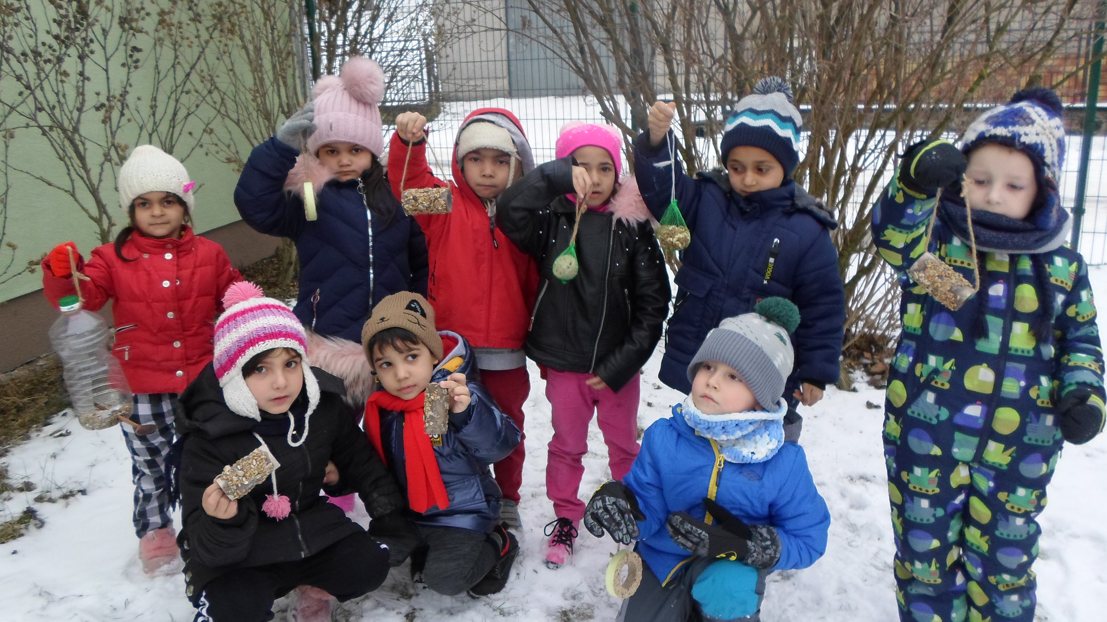 V zimných mesiacoch si našu pomoc zaslúžia aj vtáčiky, ktoré nám celú jar a celé leto spríjemňovali pobyt v prírode svojim štebotaním. Preto sme pre vtáčiky pripravili malé prekvapenie. Vyrobili sme kŕmidlo a naplnili ho čerstvým zrnkom. Prichystali sme pre vtáčiky hostinu – semienkové koláčiky, jedlé kŕmidlá. Veľa sme sa naučili o ich spôsobe života a vzhľade. Naše dojmy a zážitky z pozorovania vtáčikov a starostlivosti o ne sme aj výtvarne vyjadrili, či už kreslením alebo maľovaním. Naučili sme sa o vtáčikoch aj pesničky a básničky, čítali sme si o nich príbehy, zahrali sa pohybové hry.