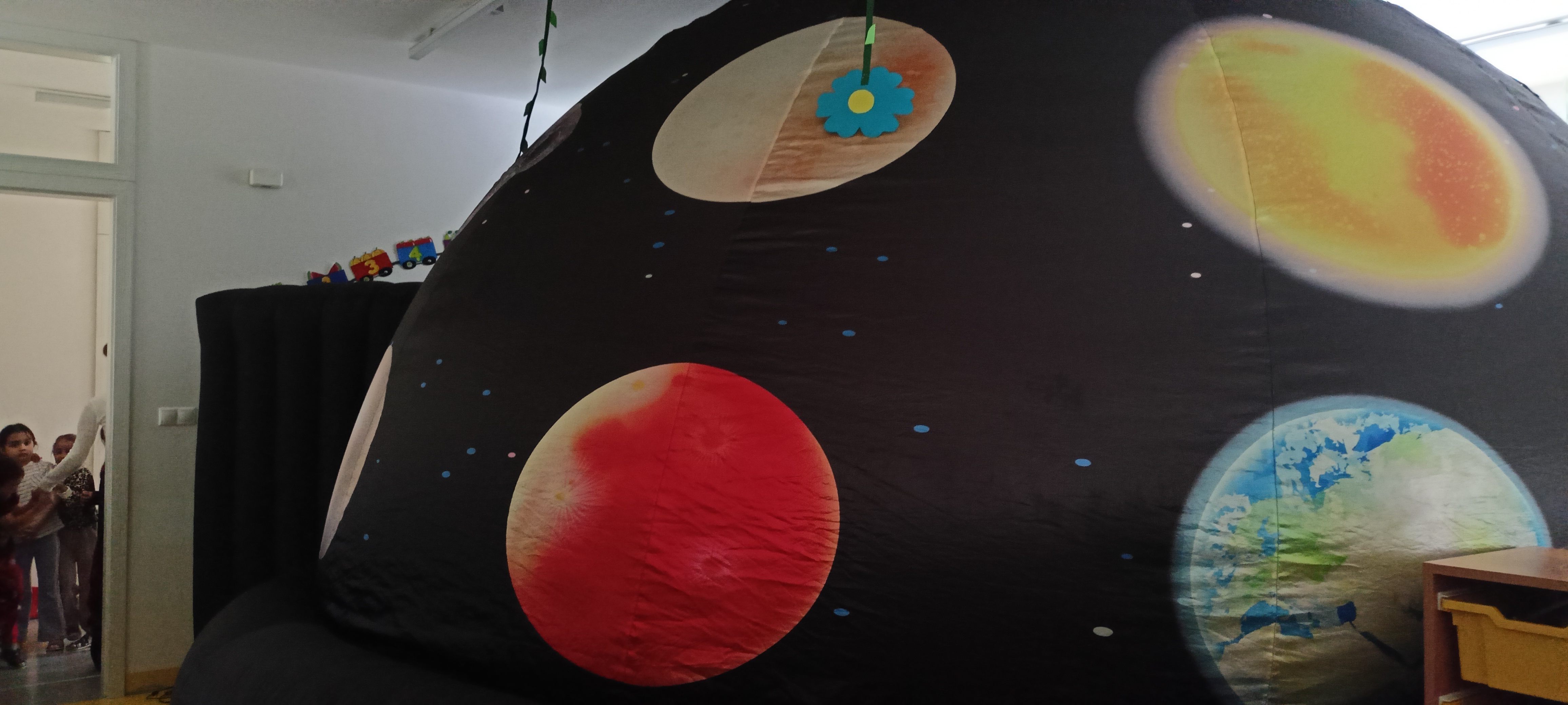 V triede materskej školy sa uskutočnila zaujímavá vzdelávacia aktivita v podaní Astro Show Košice. Do triedy bola nainštalovaná pojazdná vesmírna kupola, ktorá vytvorila jedinečný priestor na poznávanie sveta okolo nás.
